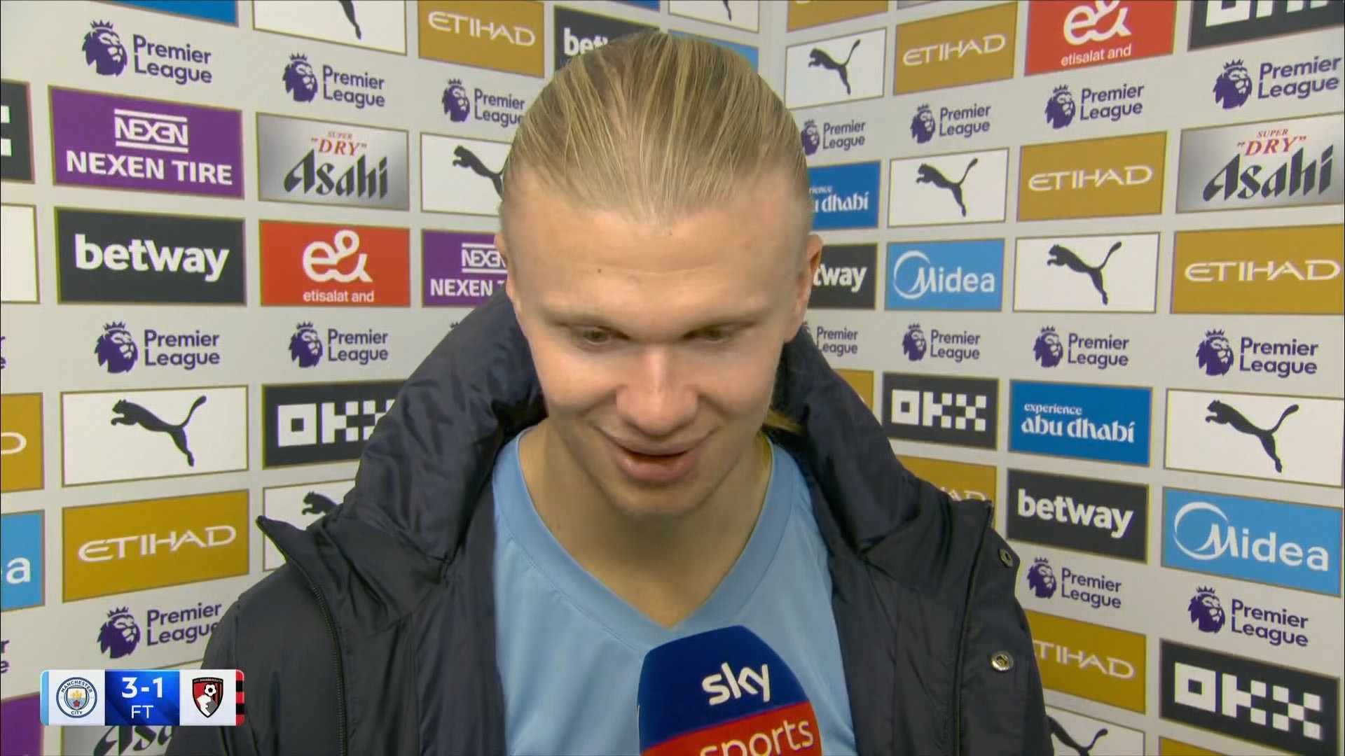 在英超第10轮上演梅开二度帮助曼城主场3-1击败伯恩茅斯之后融易富,哈兰德接受了来自天空体育的采访。